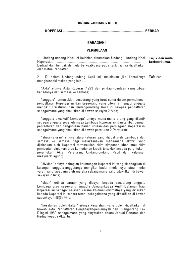 Format Undang Undang Kecil Koperasi Malaysia PDF
